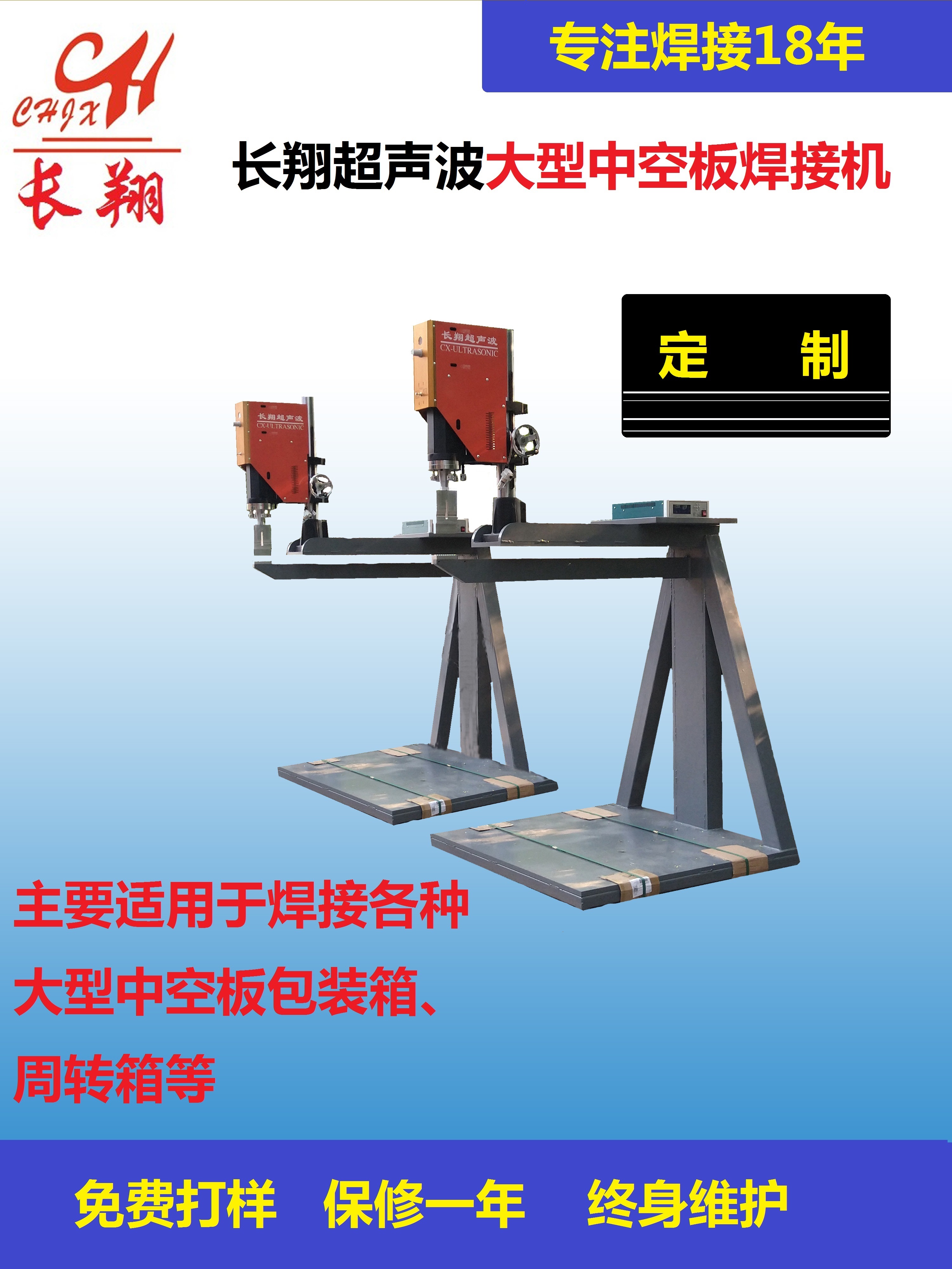 塑料周轉(zhuǎn)箱焊接機(jī):又稱超聲波焊接機(jī),加高型超音波焊接機(jī),中空板焊接設(shè)備,主要用于中空板焊接,周轉(zhuǎn)箱焊接,或者各種板類產(chǎn)品焊接,是周轉(zhuǎn)箱專用的一款焊接機(jī),使用性能穩(wěn)定,操作簡(jiǎn)單,方便快捷,環(huán)保潔凈。